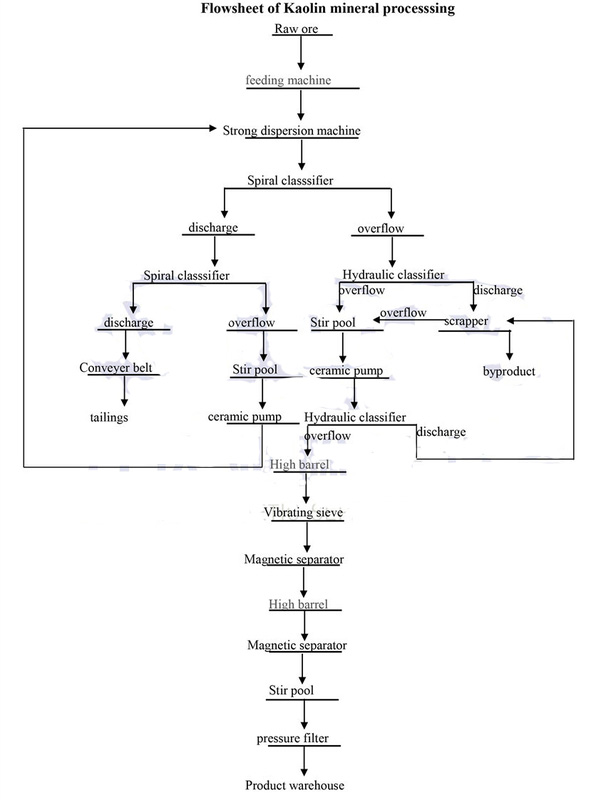 The wet process consists of several stages, such as the dispersion, classification, impurities separation of the pug and the product processing. The general process is that: raw ore→crushing→ramming paste→degritting→hydrocyclone classifier→delaminating →centrifuge classification→magnetic separation(or bleaching)→concentration→filter pressing→drying→ceramic, paper-making and coating products.